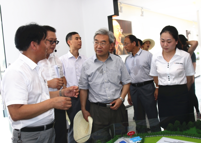 張?zhí)伊指辈块L(前排右二)在基地展廳聽取工作人員介紹
