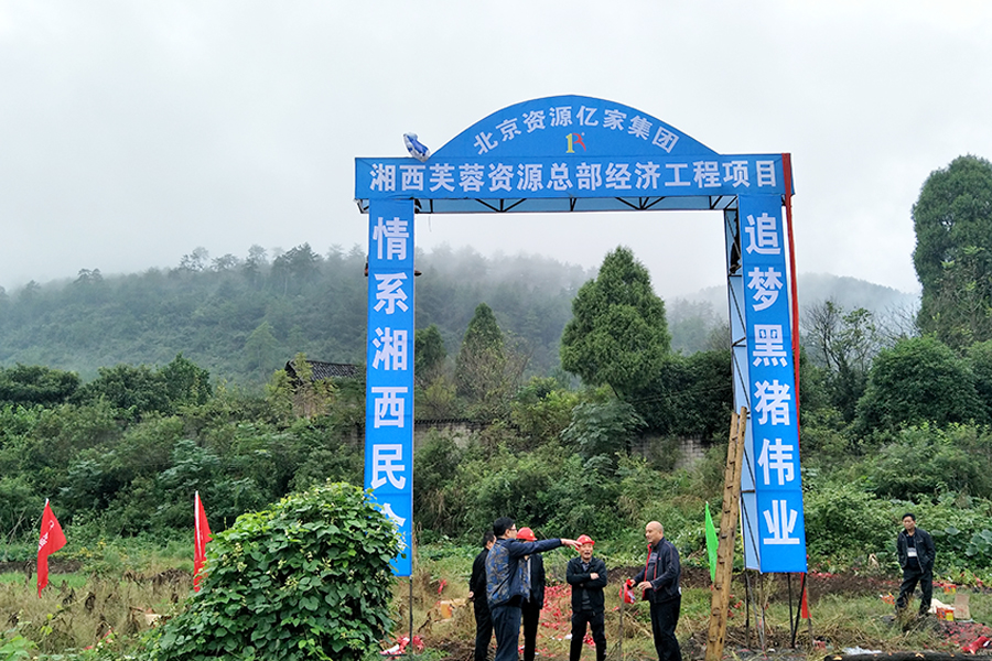 集團(tuán)副總裁劉忠貽老師、湘西芙蓉資源副總裁徐國建老師、湘西芙蓉資源財(cái)務(wù)總監(jiān)李彪老師、湘西黑豬養(yǎng)殖總經(jīng)理鞠積光老師等一起莊嚴(yán)宣讀誓詞,奏樂鳴炮為項(xiàng)目開工奠基。