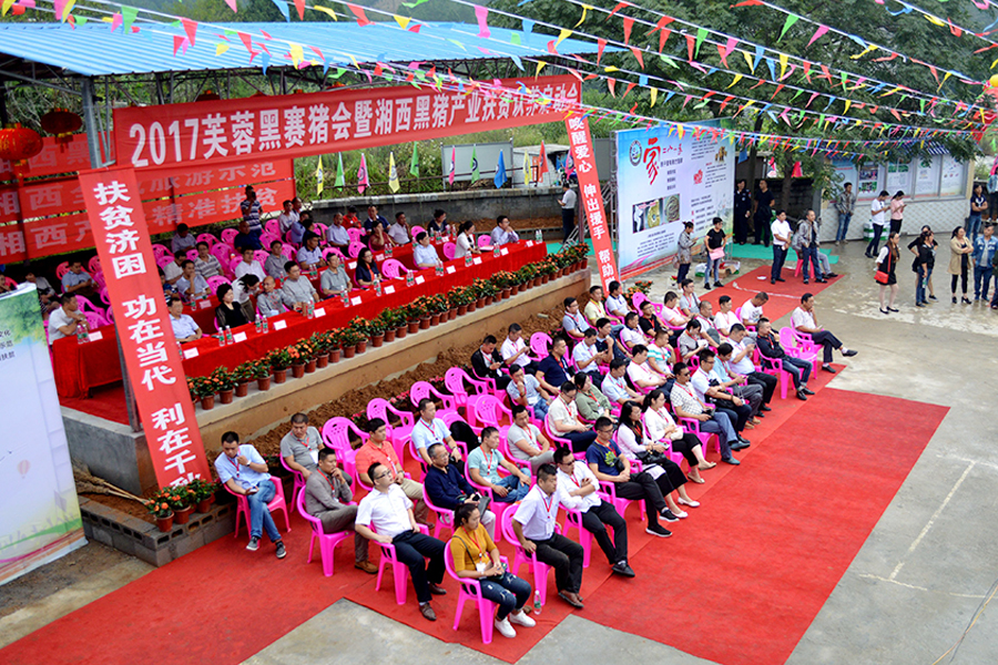9月22日,在湘西自治州建州60周年之日,由永順縣人民政府主辦,湘西州畜牧局、永順縣畜牧局、永順扶貧開發(fā)辦、世界豬業(yè)聯(lián)合會(huì)的北京資源億家集團(tuán)芙蓉黑賽豬會(huì)暨湘西黑豬產(chǎn)業(yè)扶貧認(rèn)養(yǎng)啟動(dòng)會(huì)在千年古鎮(zhèn)——芙蓉鎮(zhèn)成功召開。湘西州委州政府各部門領(lǐng)導(dǎo)、湘西州畜牧水產(chǎn)局、永順縣委縣領(lǐng)導(dǎo)出席賽豬會(huì)。全國各地現(xiàn)場以及通過互聯(lián)網(wǎng)400多萬觀眾收看參與本次賽豬會(huì),5位網(wǎng)紅現(xiàn)場行網(wǎng)絡(luò)直播,各大電視臺(tái)、新聞媒體現(xiàn)場同步拍攝報(bào)道,一起為金色的黑豬夢(mèng)加油。
